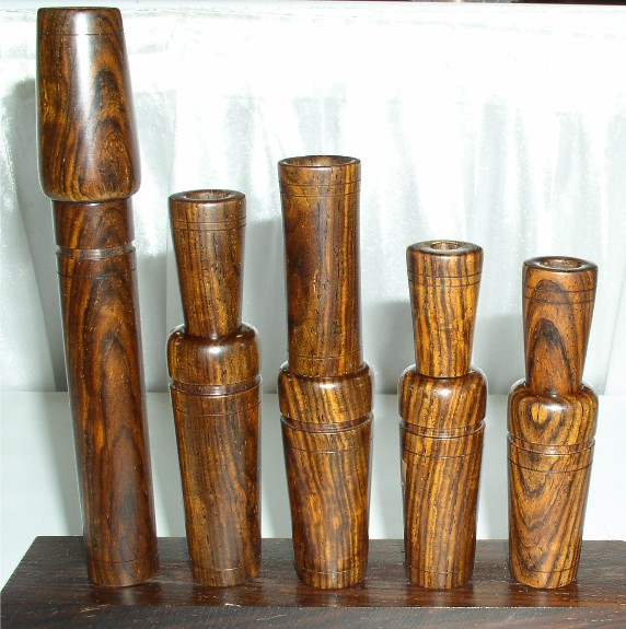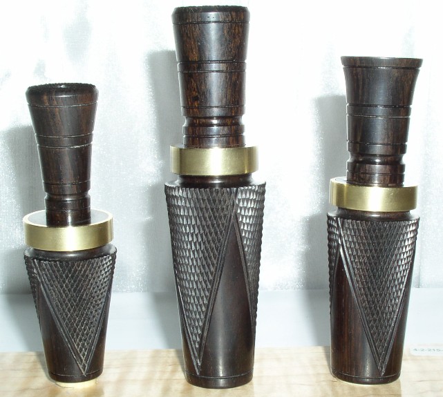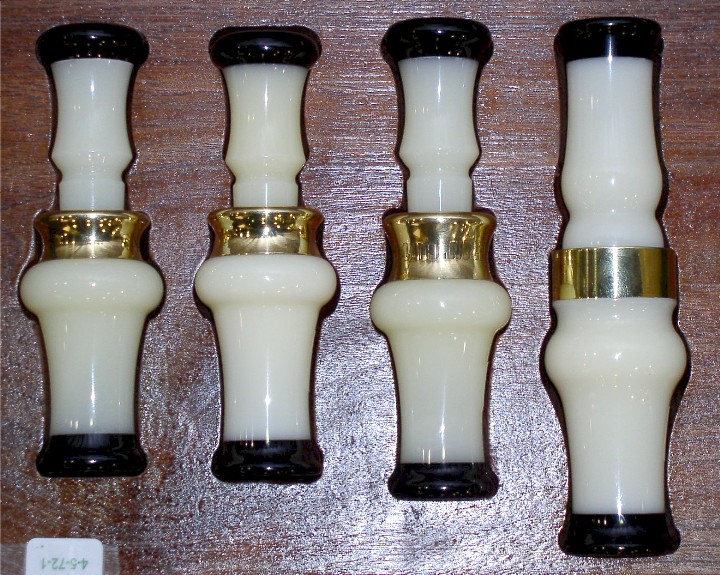 Category for traditional made metal reed wood duck calls that are hand tooled and lath turned with main emphasis on sound reproduction and quality of craftsmanship.