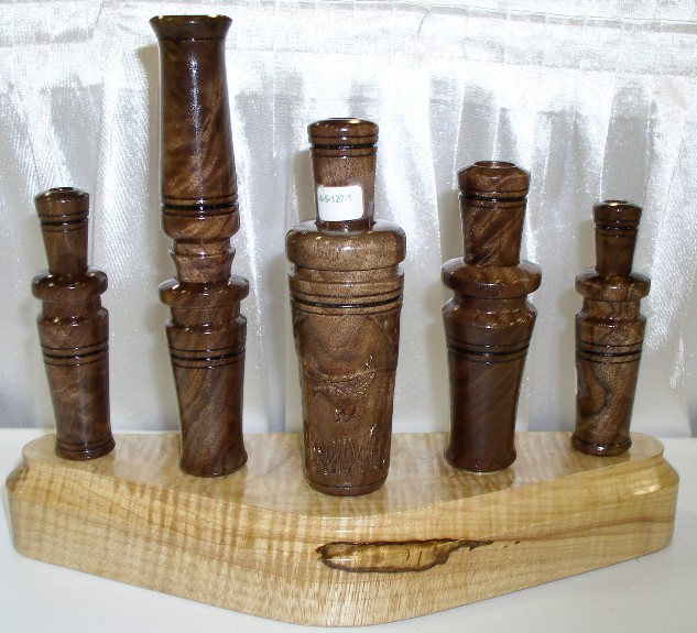 Category for two or more calls that are complimentary in design, material and adornments with main emphasis on sound reproduction and quality of craftsmanship. Entries may include any number or combination of game calls but must have a duck and goose call included.